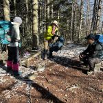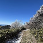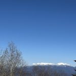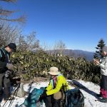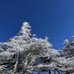 暖かい日が続いて雪がほぼ無くなってしまって、雪を求めて三千里、たどり着いたのが大川入山でした。気分は雪山‼ ロングスパッツを着けて、いざ出発! 登山道に雪はほとんど無く、あと1kmの看板のあたりから薄っすらと雪がついている、という程度でした。チェーンスパイクの出番はありませんでしたが、山頂からのパノラマは最高でした。御嶽山、乗鞍岳、遠くには穂高の山々、中央アルプス、八ヶ岳も拝めます。山頂付近には霧氷が見られ、少し雪を踏み、楽しみました。